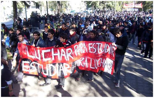 – Foto:” class=”image”> Típica reconversión de posturas ideológicas dentro de los límites de los posibilismos, la política chilena ha cambiado pero no mucho. En la foto, marcha de secundaria peleando contra el gobierno de