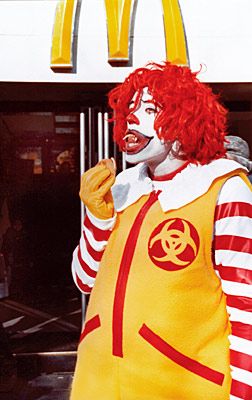 – Foto:” class=”image”> Um de seus trabalhos mais polêmicos foi a realização de uma performance com um ator vestido de Ronald McDonald postado diante de um dos restaurantes da rede que falava aos passantes sobre a forma de produção dos alimentos do McDonald´s, as condições de trabalho dos empregados e dava números como os gastos da empresa com propaganda, entre outros.